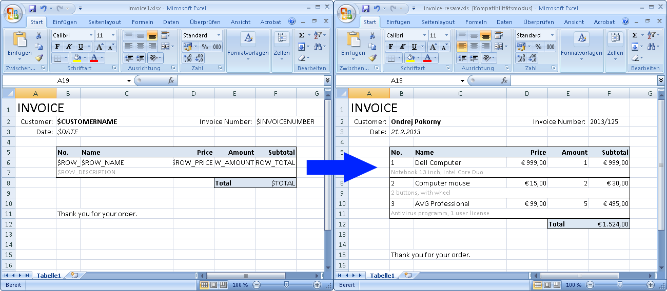 - OFiller: fill DOCX (Word 2007-2013), ODT (OpenOffice Writer), XLSX (Excel 2007-2013), XLS (Excel 97-XP), ODS (OpenOffice Calc) templates